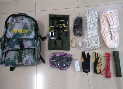 攀登作業包具有使用簡單,配套齊全,便于攜帶等特點,是公安、武警攀登訓練的必備器材。主要器材: